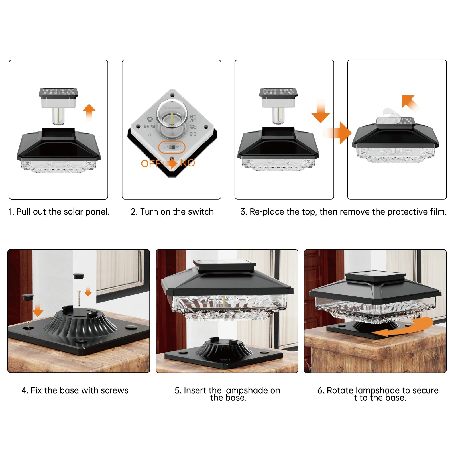 Installation is quick and simple with the included screws and easy twist-lock lampshade design. Just switch it on, mount the base, and enjoy reliable nighttime lighting.